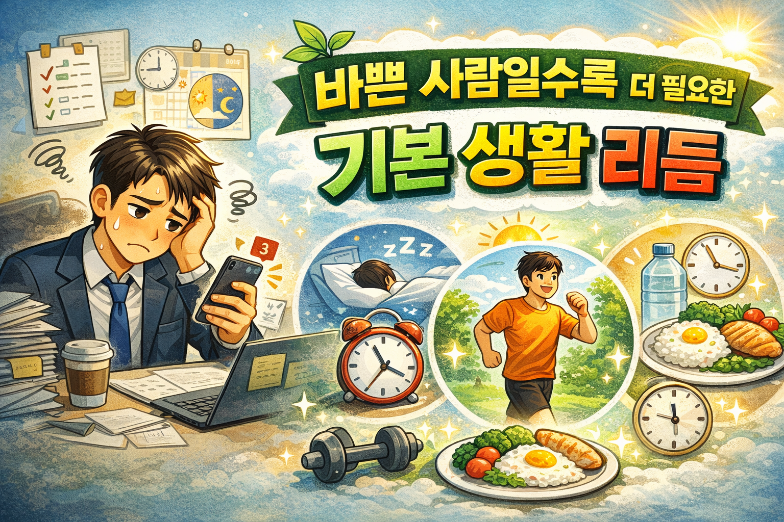 바쁘다는 이유로 건강을 미루는 습관은 단기적으로는 합리적으로 보일 수 있다. 하지만 장기적으로 보면, 바쁜 일정 자체보다 리듬 없는 생활이 몸을 더 빠르게 무너뜨린다. 바쁜 사람일수록 거창한 계획이 아니라, 최소한의 기준 하나가 필요하다. 다시 돌아올 수 있는 리듬, 완벽하지 않아도 이어갈 수 있는 구조가 몸을 지킨다.